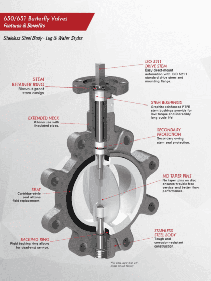 Tru-Flo Series 650/651 Stainless Steel Lug & Wafer Style Butterfly Valves